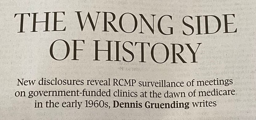 In its opinion section on July 2, 2022 the Globe and Mail carried my article about RCMP surveillance of Medicare and its founders. This piece is based upon material which I obtained under an Access to Information request regarding the RCMP Security Service.